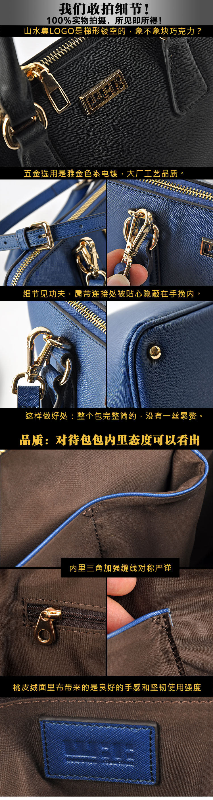 雙拉鏈的設計對這樣一款包來講,主要是方便實用。一般來講,大開口敞口向上的包型,最好就是使用雙拉 鏈,這樣安全,方便。但同樣對拉鏈的品質要求也很高,使用品質不好拉鏈,包包很快就報廢瞭。因為更換 拉鏈是非常麻煩的。我們選用的拉鏈供應商雖然沒有YKK日本拉鏈名氣那麼大,但品質絕不輸於它傢,這點 相信到手使用過3個月或者更久,肯定會深有體會。 | ||