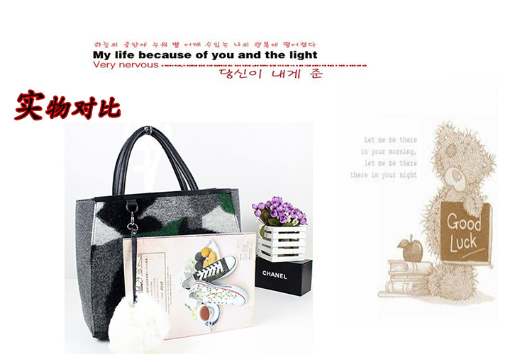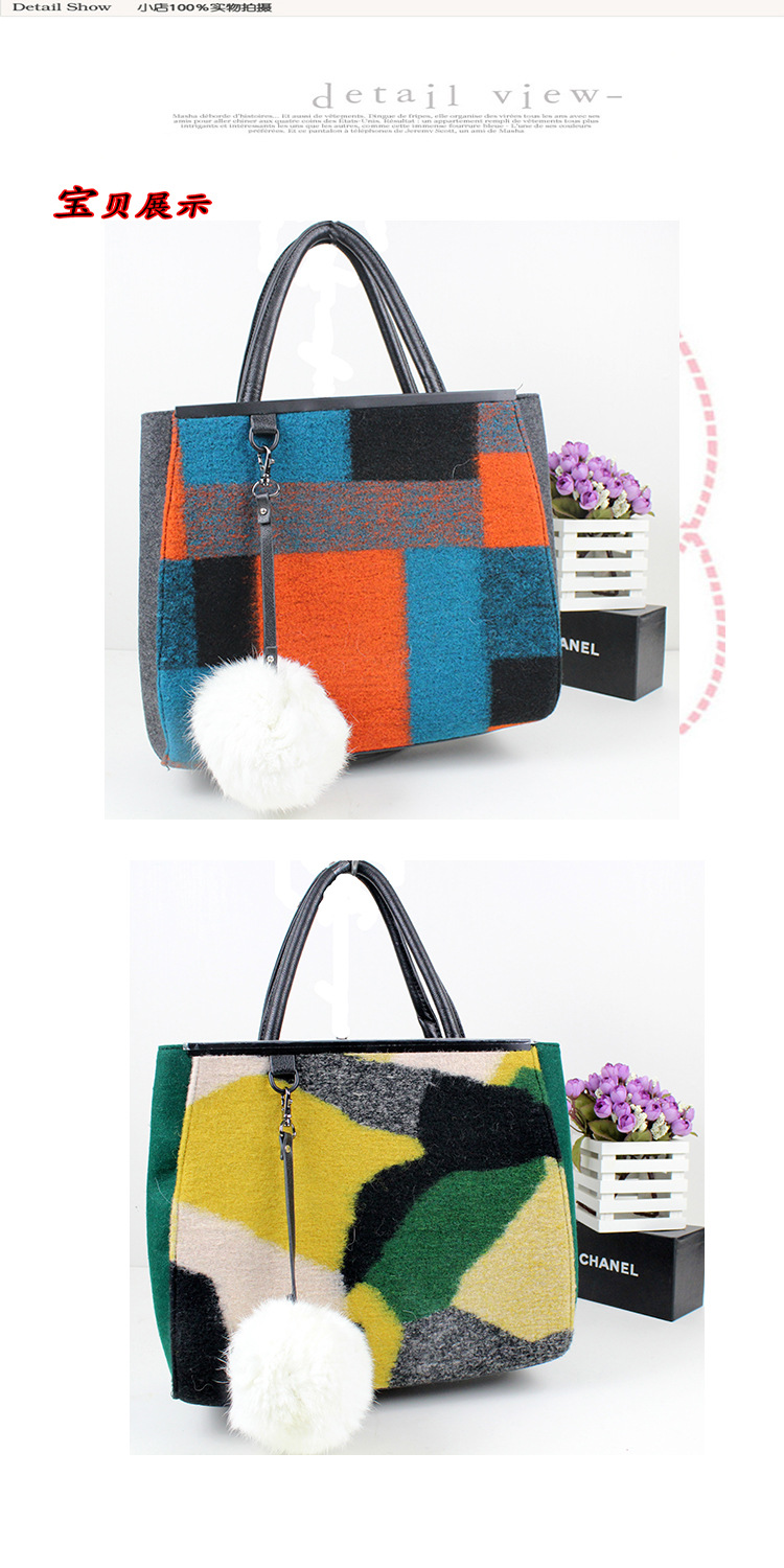 Miss Suki 韓版時尚女包呢子包兔毛球撞色包秋冬手提單肩斜跨包