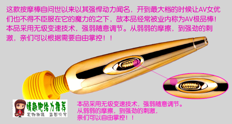 不必過多的介紹,相信看過AV影片的人都會知道這款產品,也都見識過它的厲害,它的出場必定是時刻,每當****優激情淫聲驚呼時,你是否也想嘗試一翻呢?AV按摩棒的出世是情趣玩具的一個經典,也是一個終極,沒有哪一款產品能超越它的刺激程度,它給你所帶來的高潮是一種歇斯底裡的情欲釋放。