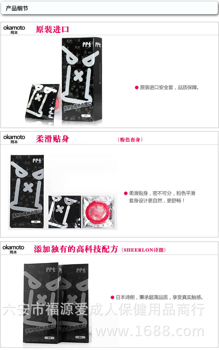 日本銷量第一岡本品牌最新推出PPT6款狂玩系列,幾乎匯集瞭所有套套的特征,因為有不用顏色,不同香味,有超薄,平滑,浮點等不同設計。