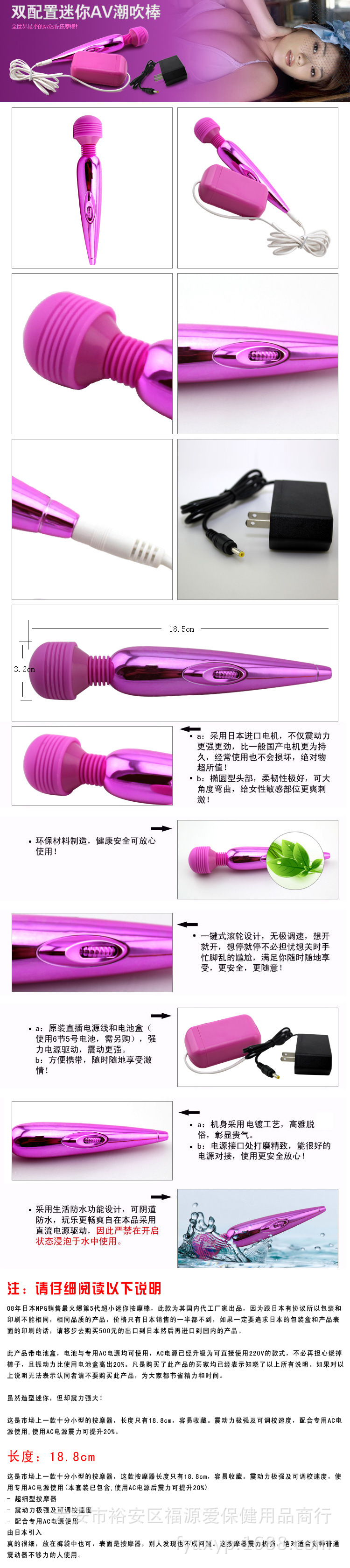 此產品附送電池盒和AC電源,AC電源已經升級為可直接使用220V的款式,不必再擔心燒掉棒子,且振動力比使用電池盒高出20%。凡是購買瞭此產品的買傢均已經表示知曉瞭以上所有說明。如果對以上說明無法表示認同者請不要購買此產品,為大傢都節省精力和時間。