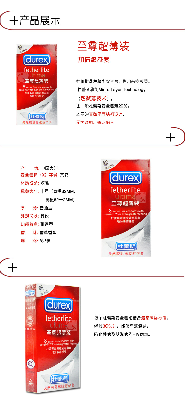 杜蕾斯最薄膠乳安全套,增加親密感受。 杜蕾斯獨創Micro-Layer Technology(超微薄技術),比一般杜蕾斯安全套薄20%。 本品為直壁平面結構設計,無色透明,香味怡人