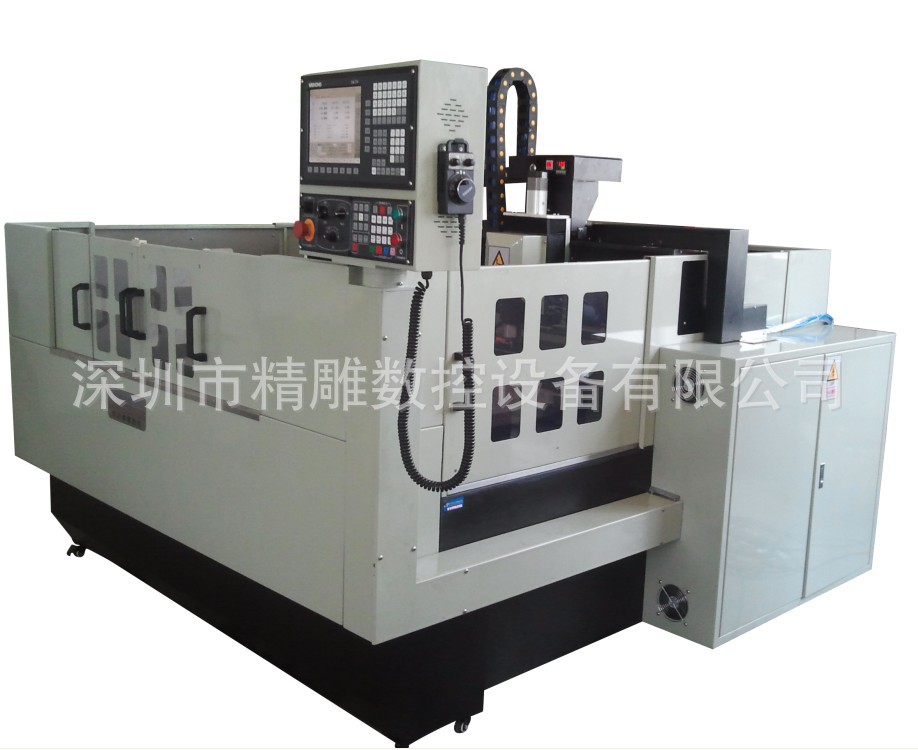 玻璃精雕機為數控機床的一種,又名:玻璃雕刻機、玻璃打孔機、玻璃磨邊機、異形玻璃切割機、玻璃開槽機、精密玻璃成形機。其這一概念最先由深圳遠洋數控提出並實現,玻璃精雕機其主要應用於各種超薄玻璃的精細加工、異形切割,技術已非常成熟.由於未來電子消費市場的發展和需求,更多的數位電子顯示屏采用瞭玻璃為顯示屏或觸摸屏,玻璃精雕機的市場也越來越巨大.