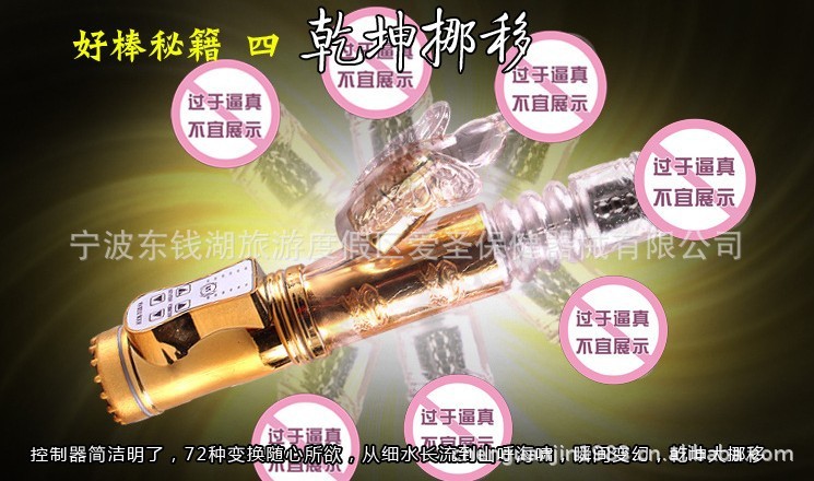 愛聖最新上市,繼承瞭多款爆發式轉珠棒的優良傳統,前段依然沿用大頭仿真設計,中段采用2012年最流行和科學的元素-大環紋設計,並首次采用瞭前端不斷伸縮功能,伸長時能不斷摩擦A點加上雙向360度轉動,配合360度搖擺轉動,全方位刺激你每一個感官細胞!讓你欲仙欲死啊~~!