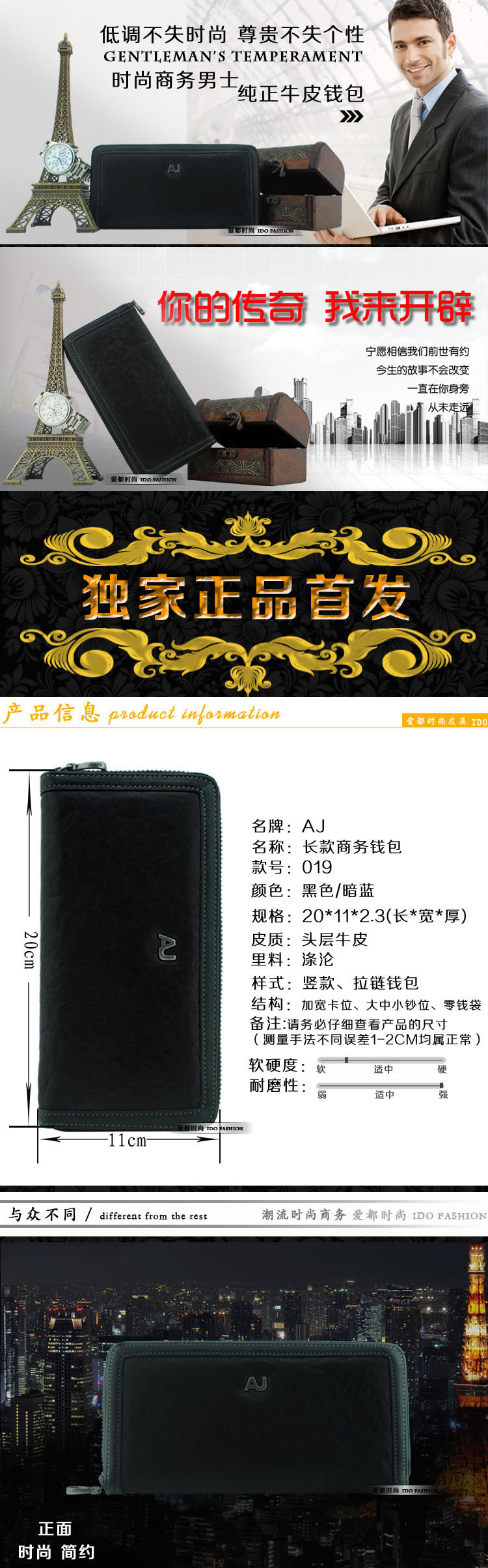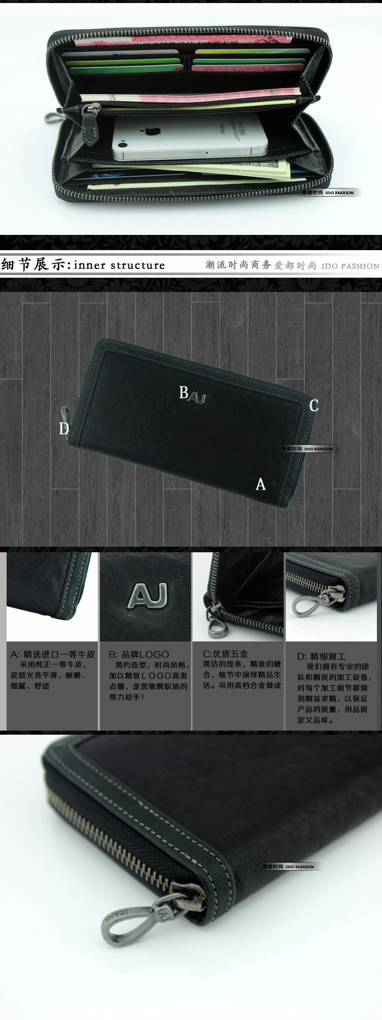 2013熱賣新款男士高檔精致中長款真皮AJ錢包手拿包現貨批發wallet