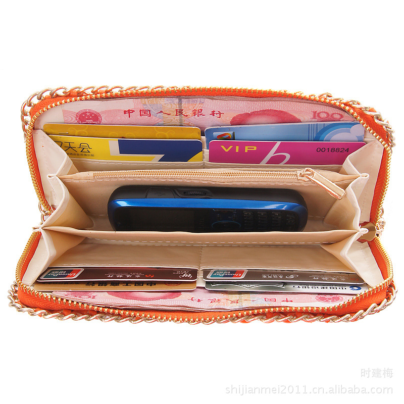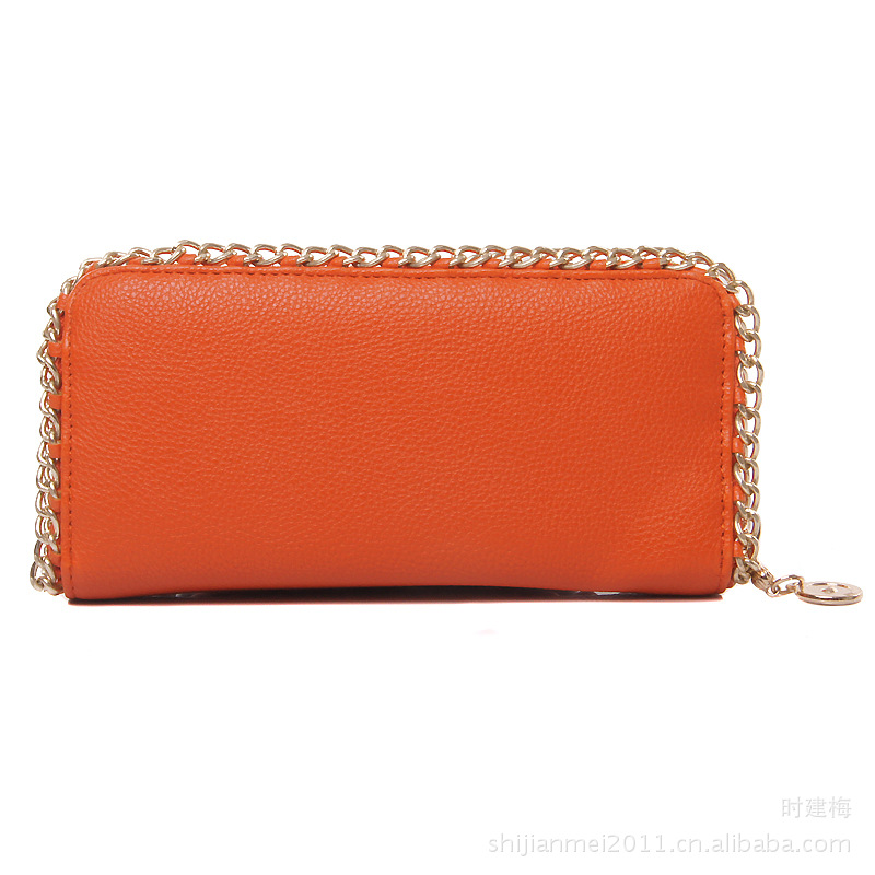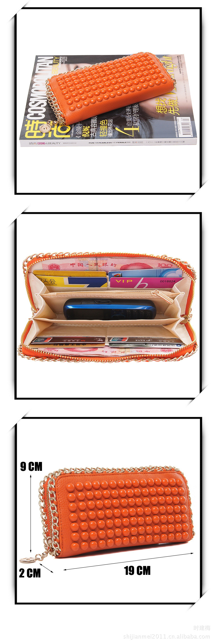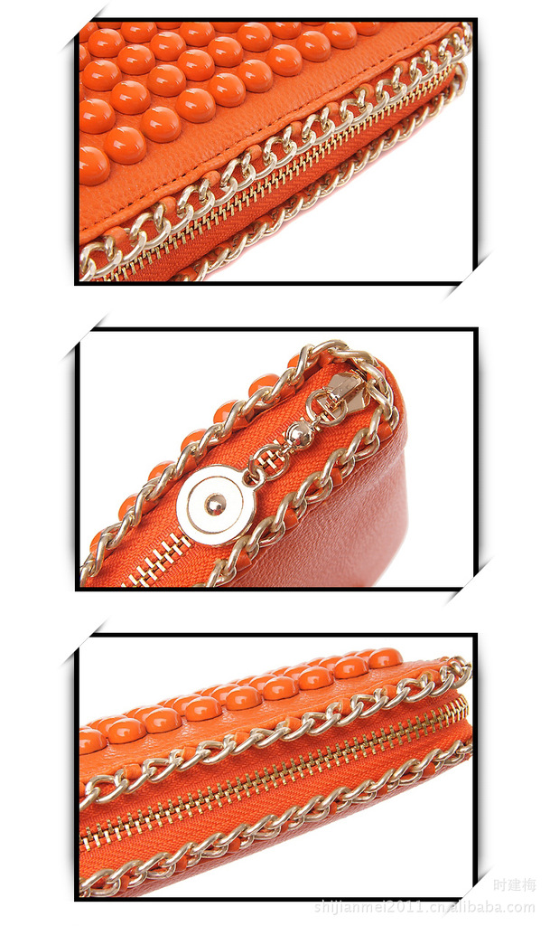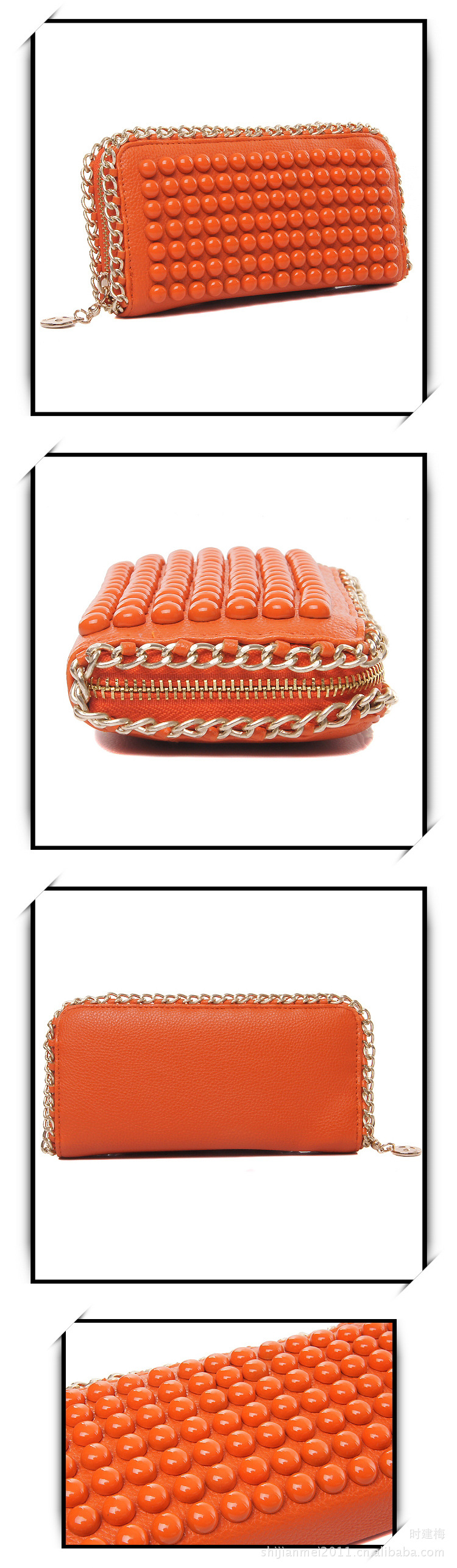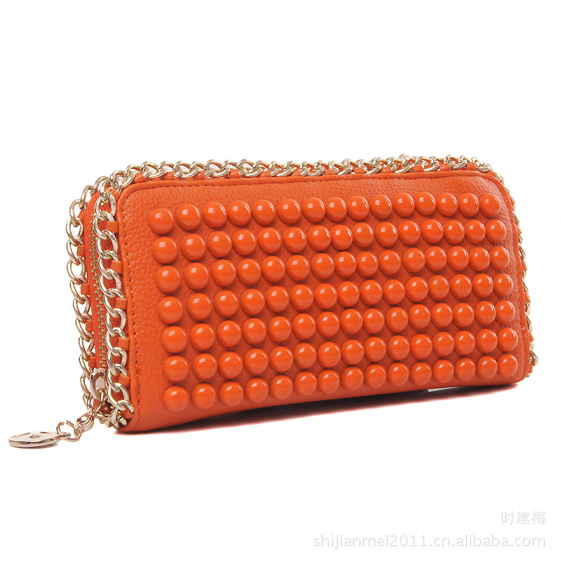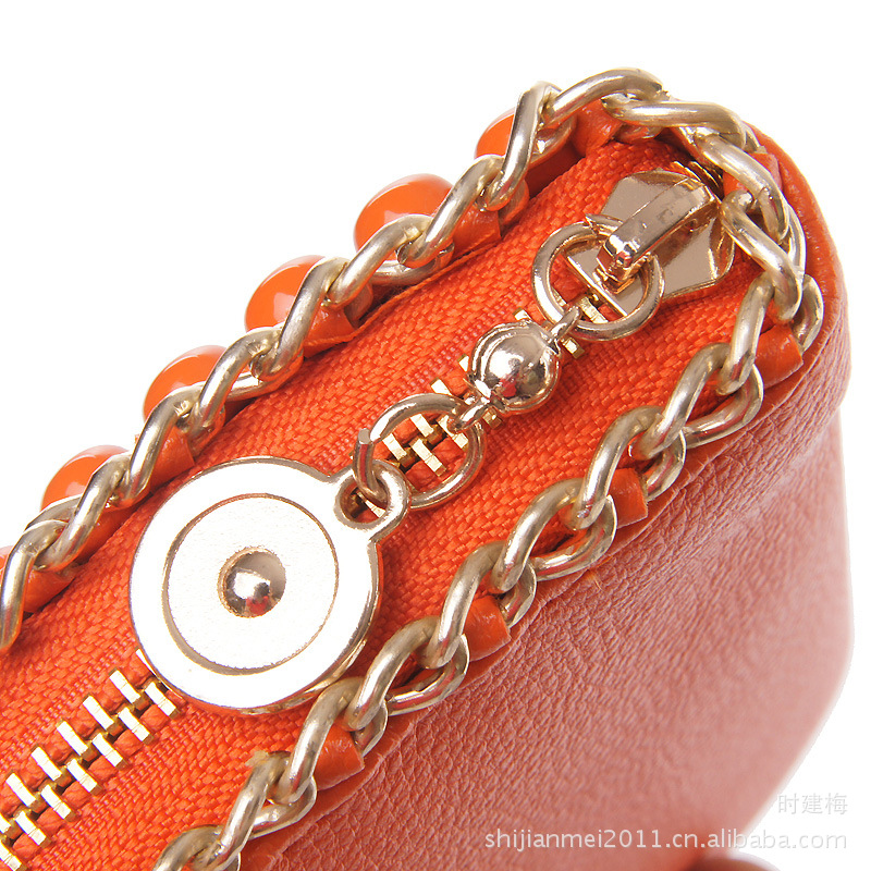 鐵鏈油皮韓國手拿包手包重手工穿珠鏈條女生女款錢包