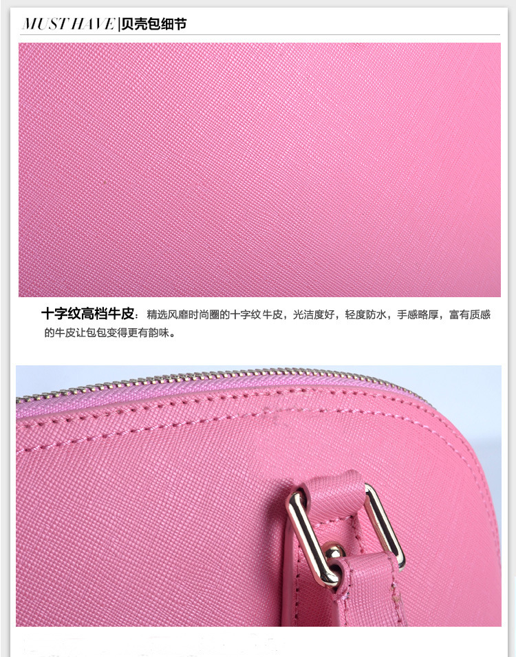 明星同款爆款貝殼包,包包采用十字紋高檔牛皮,做工精細,有大號和小號,6個顏色。 詳情請看如下實拍圖片
