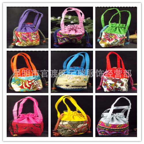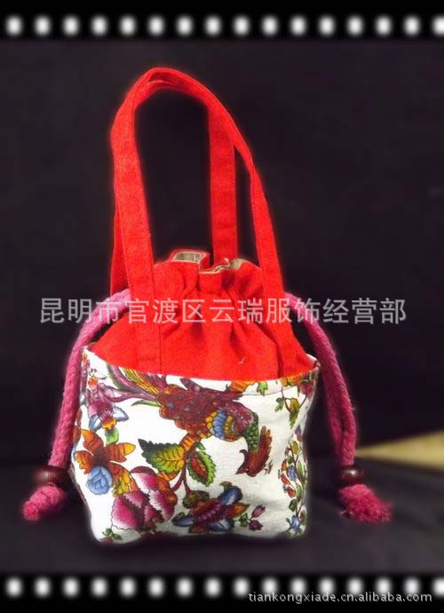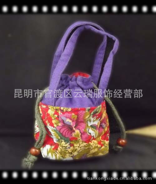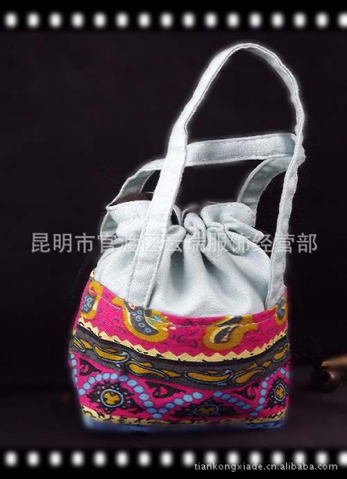 產品名稱: 廠傢直銷棉麻印花佈拼接手提包民族特色小包 手包