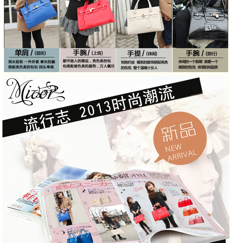 歐美明星同款鱷魚紋女包2013新潮淘寶爆款手提單肩包廠傢批發代發