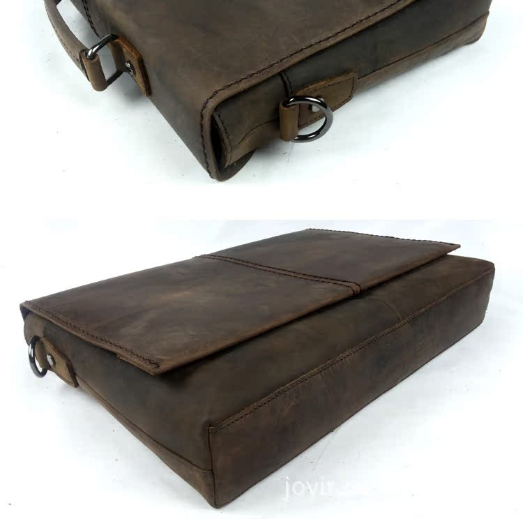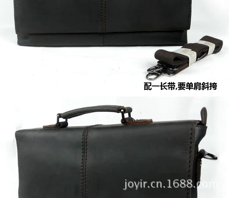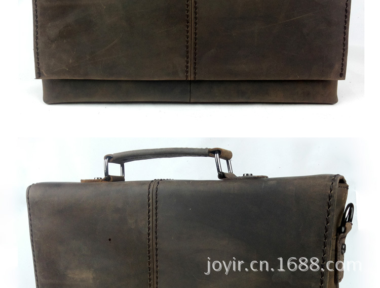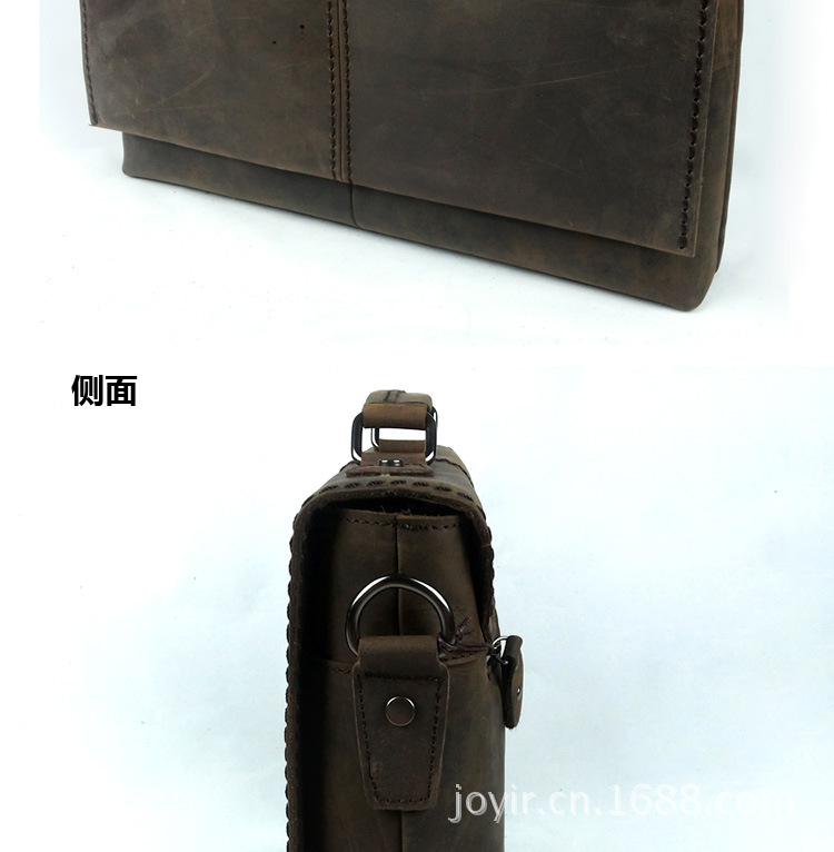 100%頭層牛皮 復古時尚公文包 歐美風商務手提包 瘋馬皮單肩斜挎