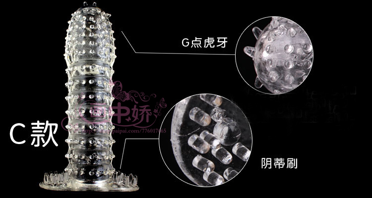【功效】仿真型態,頂部龜頭設計,有效增長2cm。能有效刺激女性敏感部位,使女性更易獲得快感,使夫妻雙方皆大歡喜。它能對女性陰道壁及宮頸口產生最大程度的摩擦,令女性高潮疊起。同時對陰莖增粗加長,還可有效延緩射精時間。