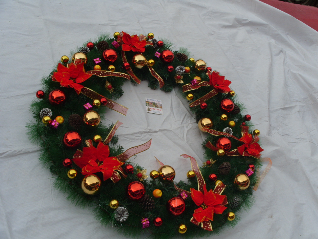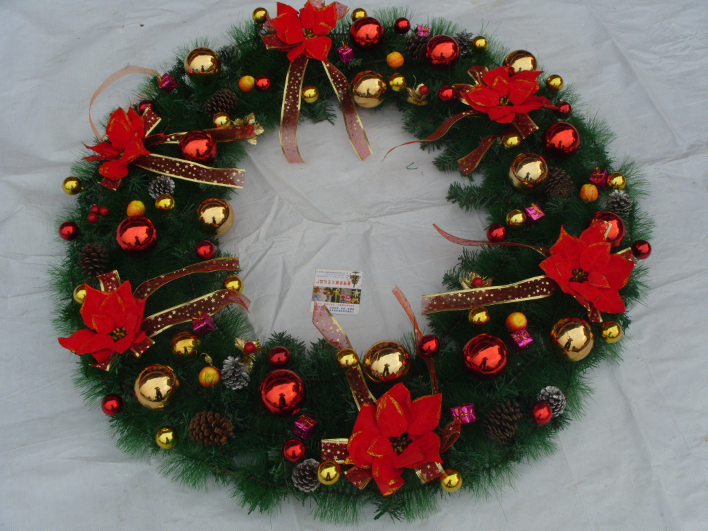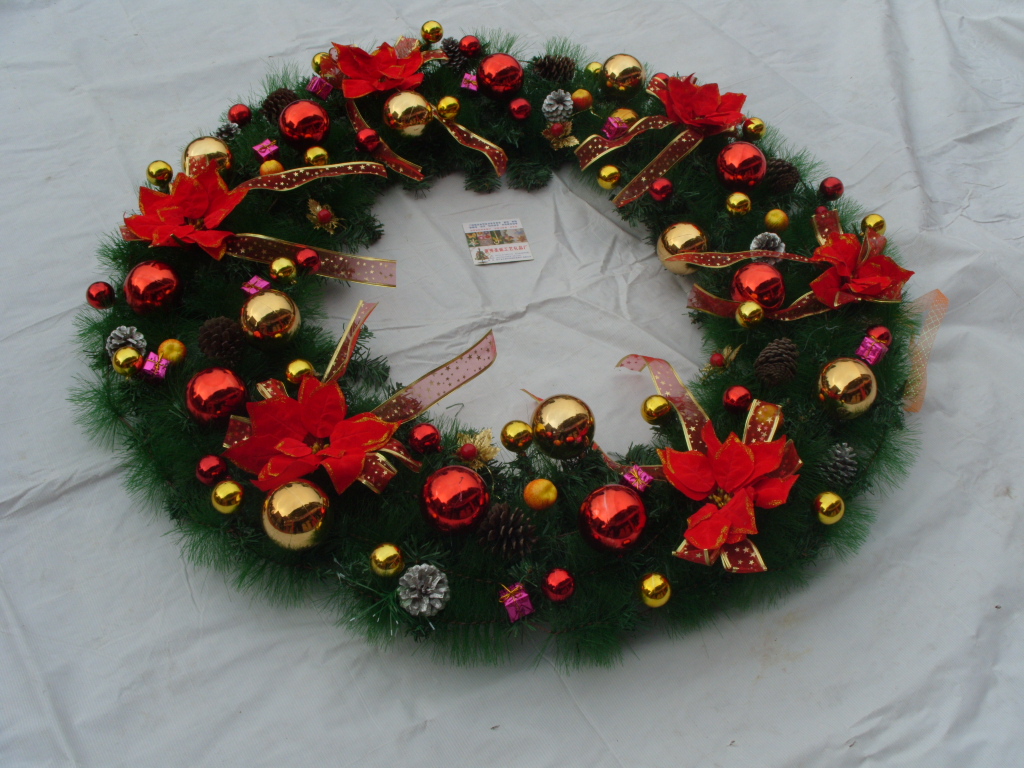 【品名】:1.2米特大聖誕花環 1.2m豪華金裝大花環