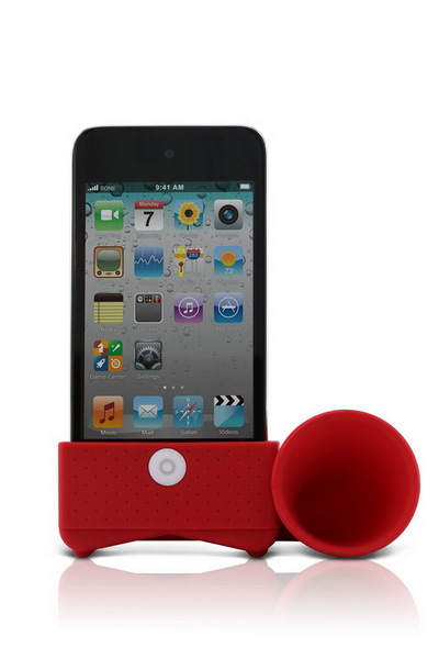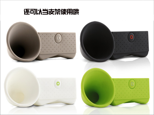 號角擴音器Horn Stand,采用矽膠材質制作,不會傷害到iPhone們嬌嫩的肌膚。傳統而有效的大喇叭造型,能在不需要耗費任何電力的情況下將外放聲音放大13分貝!而且還能當支架使用——當我們用它將iPhone豎放或者平放,大喇叭剛好正對我們,用來聽聽音樂、看看MTV和電影,正合適~