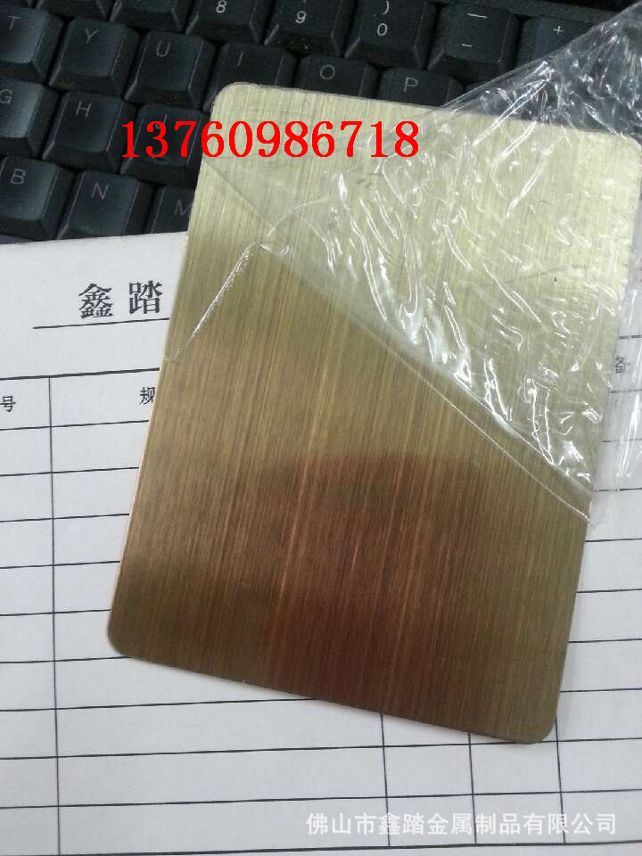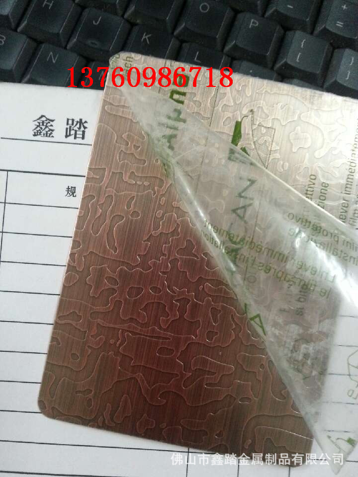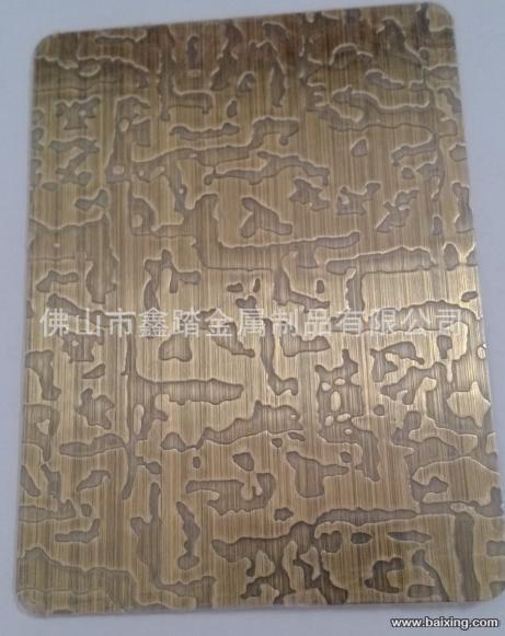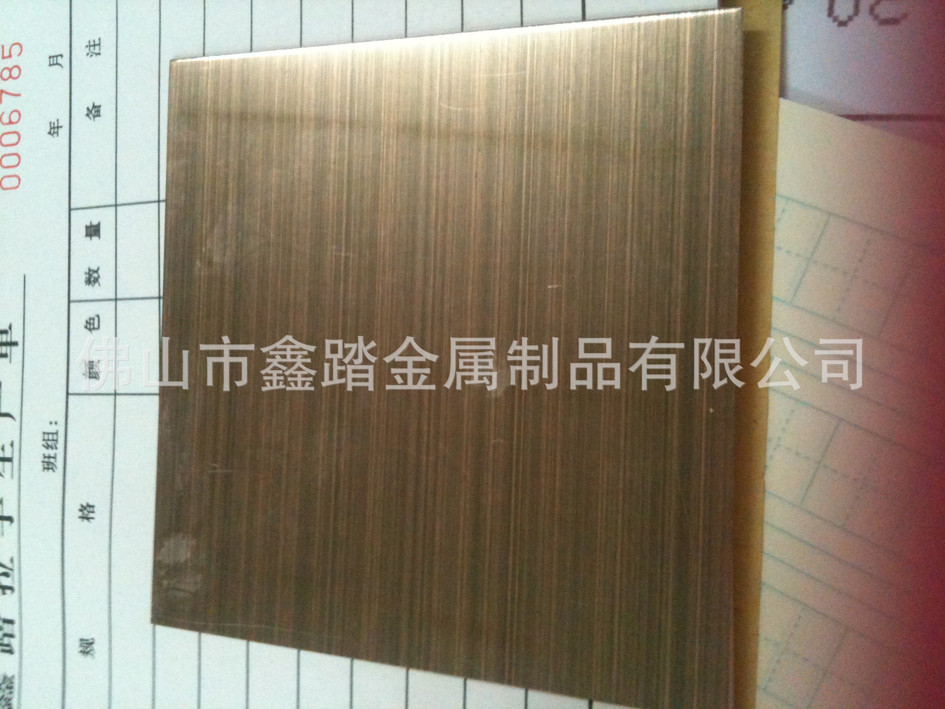 佛山市鑫踏不銹鋼制品有限公司已開發瞭多種PVD鍍膜新工藝,產品主要包括:彩色不銹鋼鏡面板,彩色不銹鋼蝕刻板,彩色不銹鋼花紋板(各種圖案)、彩色不銹鋼鈦金板(各種顏色)、彩色不銹鋼砂紋板(各種紋路)、彩色不銹鋼壓花板(珠光板)、電梯裝飾板,衛浴櫃裝飾花紋板,櫥櫃臺面裝飾壓紋板,工藝銘牌等,顏色主要有:金黃色,寶石藍,灰色,黑槍色,(電鍍,水鍍)黑色,咖啡色,幼彩色,鋯金色,青銅色,玫瑰色,香檳金色,咖啡色,青古銅等,色彩艷麗,盡顯雍榮華貴的品質,同時耐磨損,抗腐蝕性能有顯著提高。表面狀態有油磨拉絲、油磨雪花砂、8K、精磨鏡面及表面無指紋處理。本公司專業生產各種裝飾結構用不銹鋼板材。。品種規格齊全,款式新穎、多變,用途廣,裝飾效果強,在行業使用中有相當知名度。產品廣泛應用於建築裝飾、豪華門、電梯裝璜、金屬箱體外殼、機械設備外殼、造船、列車內飾等,以及戶外工程、廣告銘牌、櫥櫃天花、走道板、屏風、隧道工程、酒店、KTV大堂內外墻、廚房設備、輕工制品等行業。品質保證,價格實惠,歡迎新老客戶來電咨詢。