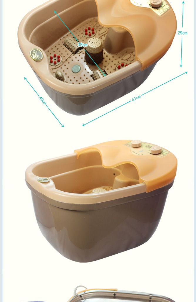 功能:足浴器底部大滾輪按摩和針頭配合高頻振動。