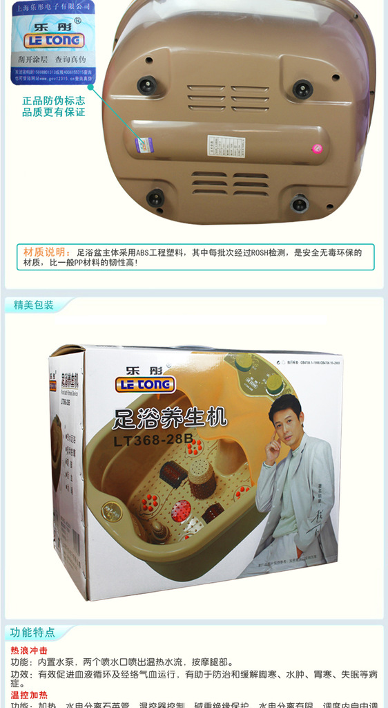 功能:內置水泵,兩個噴水噴出溫熱水流,病休按摩 腿部。