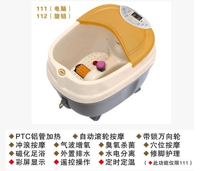 產品特點:超深桶 大容量 真正的足浴享受!腳底全自動滾輪按摩 電腦數位彩屏顯示 沖浪加熱 氣泡增氧 臭氧殺菌 無線遙控 外置排水 節能省電 使用更方便。