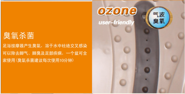 5.臭氧去除腳氣、腳臭、腳癬--足浴按摩器可產生臭氧氣泡,溶解於水中,用含有活氧水泡腳,可殺除腳上的各種細菌,您的腳自然就不會生腳氣瞭。