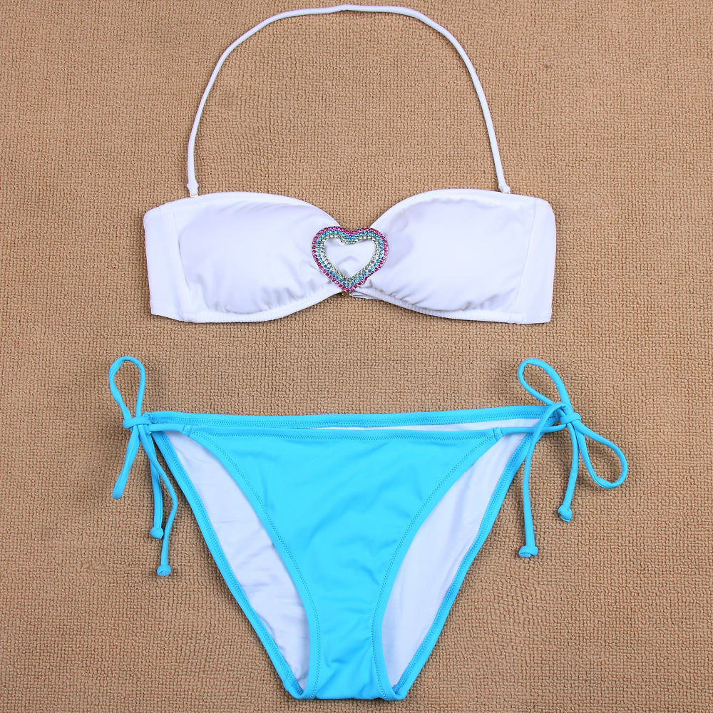 VICTORIA SECRET抹胸水鉆心心比基尼原單女泳衣套裝原單現貨