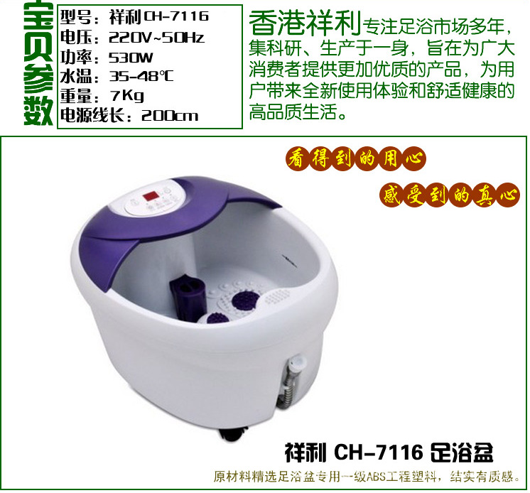 正品祥利2012年新款CH-7116足浴盆足浴器洗腳盆加熱足療盆下排水