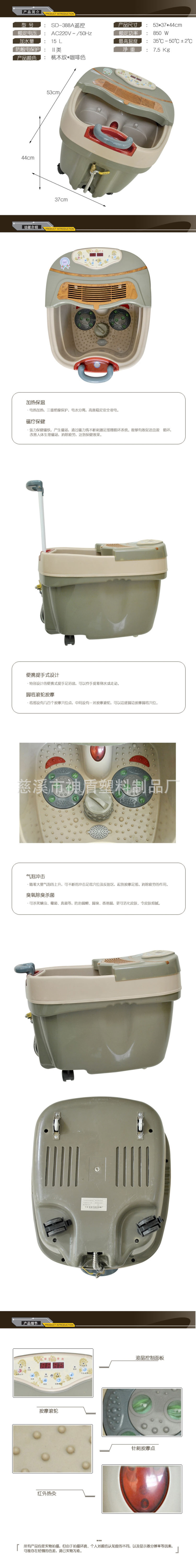 1.自動加熱保溫--足浴按摩器采用節能流水直熱式,可有效控制、保持人體感覺舒適的水溫,開機後可在35-48℃之間隨意調節,到達你設定的溫度。此機會自動保持恒溫狀態,使您盡情享受足浴按摩器帶給您的舒適。