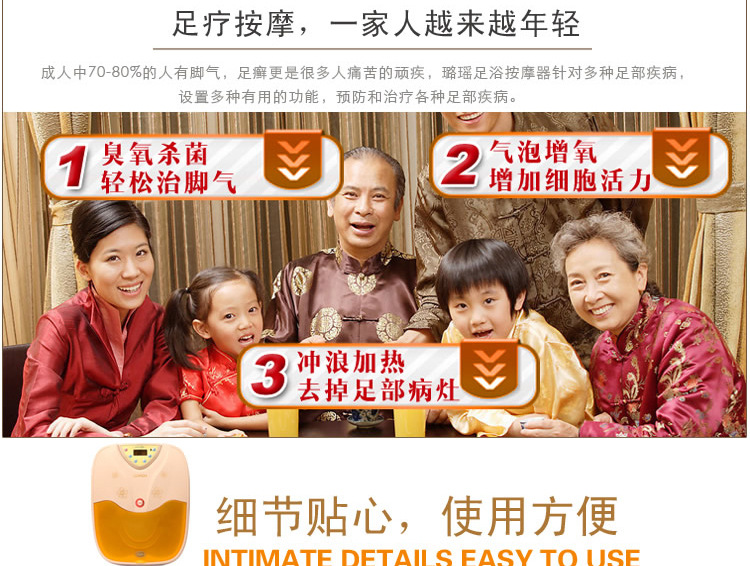 通過按摩足浴器中間的按摩輪或按摩球對足底局部穴位進行重點按摩。