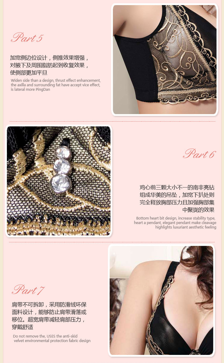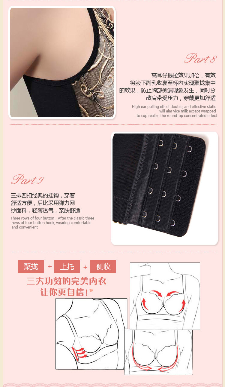 內衣廠傢批發 刺繡聚攏收副乳調整型胸罩胸罩厚薄可選一件代發