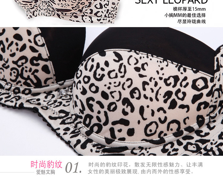 廣州內衣批發夏款性感豹紋定型調整型胸罩厚款聚攏小胸胸罩批發