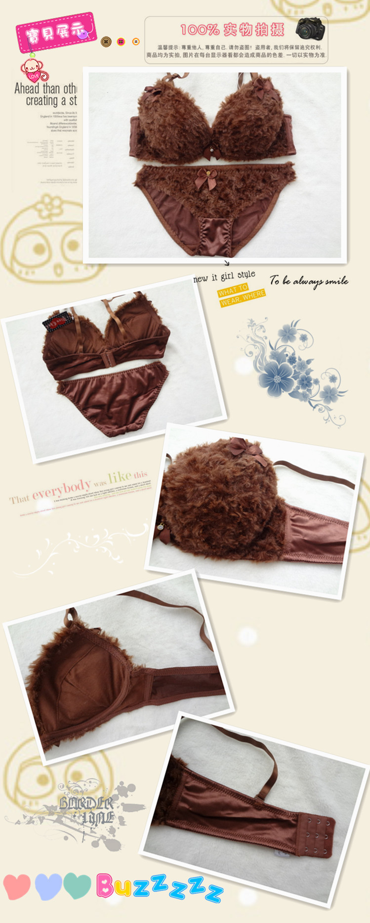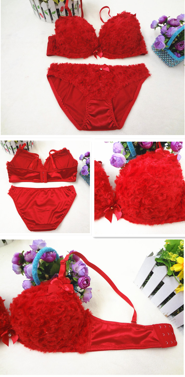 2081 爆款毛絨絨公主 毛茸性感聚攏少女胸罩套裝內衣套裝批發