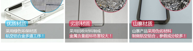 關於產品材質:我們有信心完全PK掉任何一傢銷售金屬邊框的商傢!