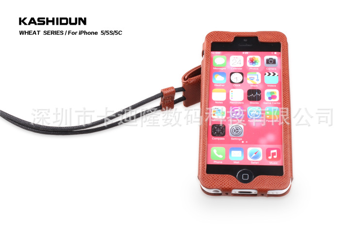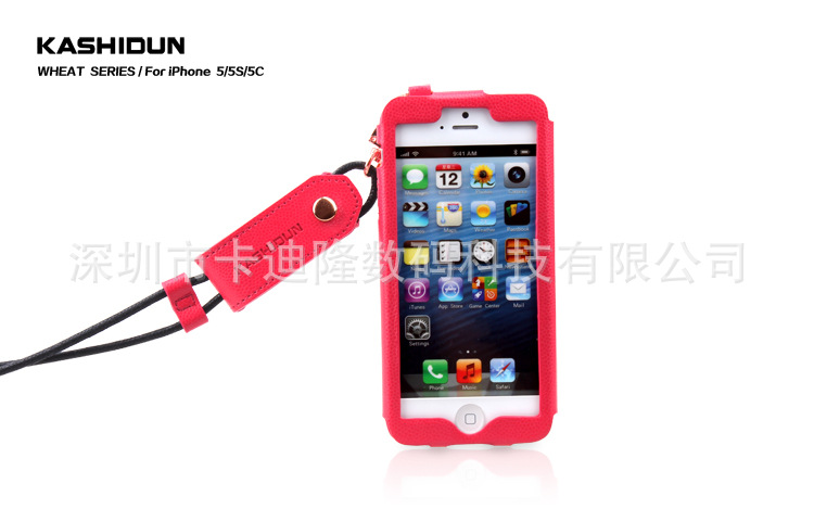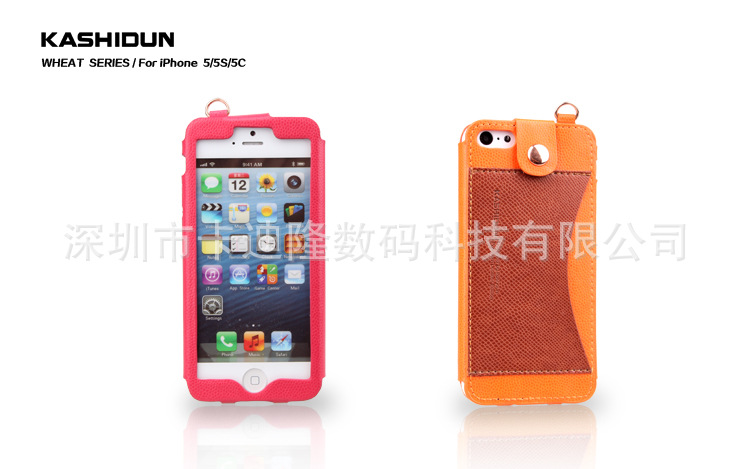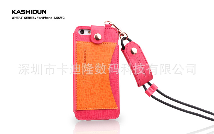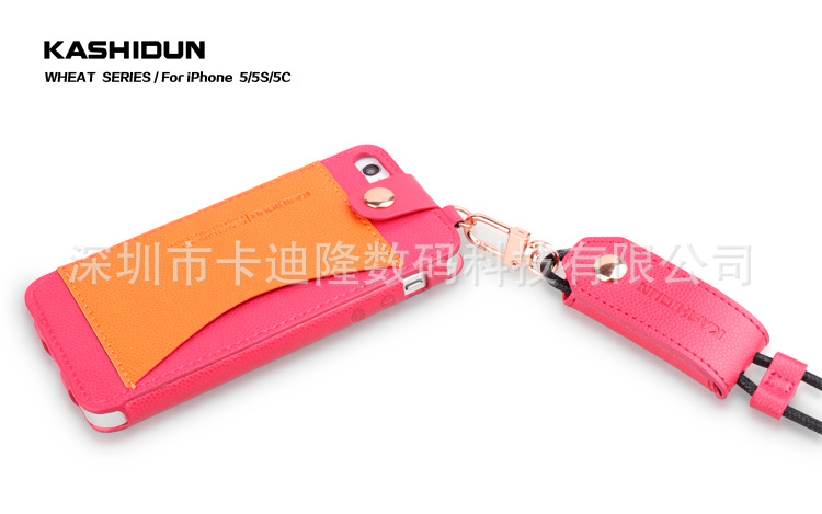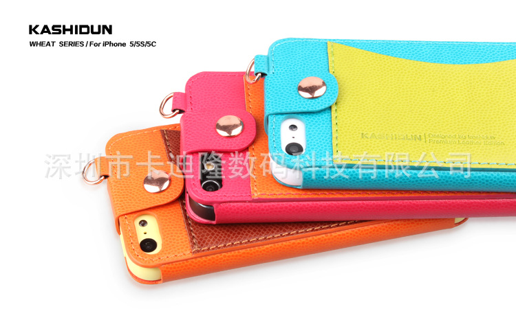 產品名稱麥系列吊繩款皮套 產品材質進口PU 產品顏色玫紅色、草綠色、棕色、黑色、白色、藍色橘黃色 產品適用機型蘋果Iphone 4/4s 蘋果Iphone 5/5S/5C 產品工藝電壓+車線