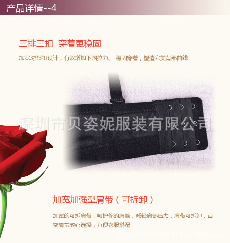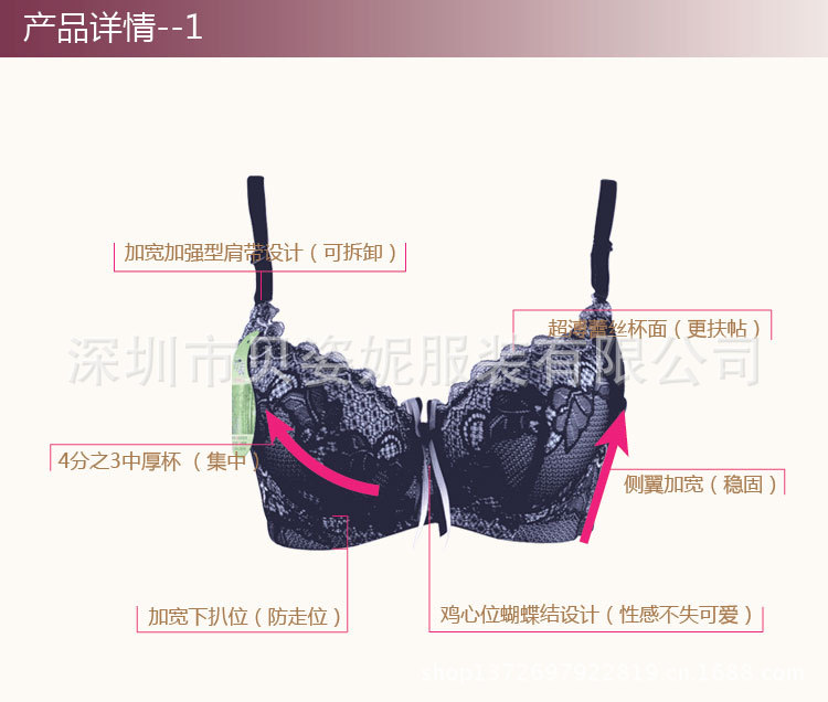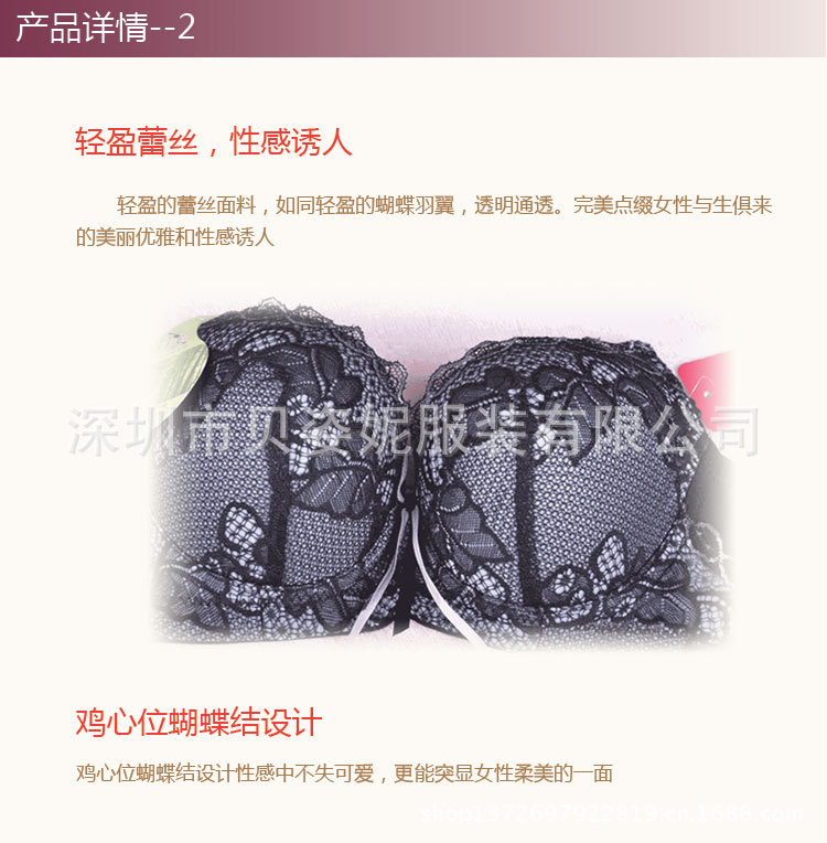 貝姿妮 調整型胸罩黑色性感嫵媚收側乳胸罩 8130按推薦 豐滿MM系列 嬌小MM系列 少女 按功能 聚攏 無痕 上托 調整 前扣 深V 無鋼圈 呼吸聚變 可插墊 按厚度 超級立體(上下都厚) 立體,本公司以貝姿妮為品牌,我們公司具備深圳市貝姿妮(有限公司) 經銷批發的內衣;其他女士內衣;胸罩;女式內衣套裝;女式內褲暢銷消費者市場,在消費者當中享有較高的地位,公司與多傢零售商和代理商建立瞭長期穩定的合作關系。深圳市貝姿妮(有限公司) 經銷批發的內衣;其他女士內衣;胸罩;女式內衣套裝;女式內褲品種齊全、價格合理的特點主要以零售商、代理商、批發商為市場導向,是一傢從事服裝行業經營的私營企業,所經營的產品具備深圳市貝姿妮(有限公司)內衣/其他女士內衣;胸罩;女式內衣套裝;女式內褲美腿襪子 連褲襪子 九分褲襪 七/五分褲 高筒襪子 中筒襪子 短筒襪子 薄款絲襪 按推薦 豐滿MM系列 嬌小MM系列 少女 按功能 聚攏 無痕 上托 調整 前扣 深V 無鋼圈 呼吸聚變 可插墊 按厚度 超級立體(上下都厚) 立體的優勢,我們的經營理念是按推薦 豐滿MM系列 嬌小MM系列 少女 按功能 聚攏 無痕 上托 調整 前扣 深V 無鋼圈 呼吸聚,企業全稱是深圳市貝姿妮服裝有限公司,公司於2013年成立,註冊資金為50---100萬,現在已達到10--50人的規模,深圳市貝姿妮(有限公司) 經銷批發的內衣;其他女士內衣;胸罩;女式內衣套裝;女式內褲暢銷消費者市場,在消費者當中享有較高的地位,深圳市貝姿妮(有限公司) 經銷批發的內衣;其他女士內衣;胸罩;女式內衣套裝;女式內褲品種齊全、價格合理。按推薦 豐滿MM系列 嬌小MM系列 少女 按功能 聚攏 無痕 上托 調整 前扣 深V 無鋼圈 呼吸聚變 可插墊 按厚度 超級立體(上下都厚) 立體(上薄下厚) 中厚杯 。