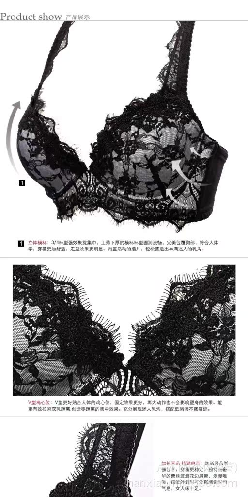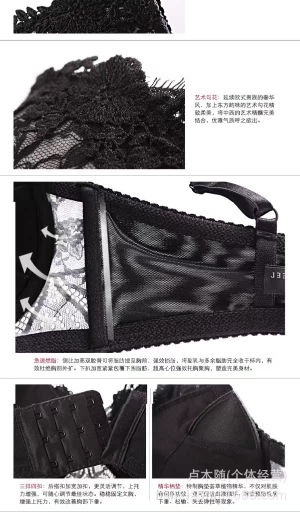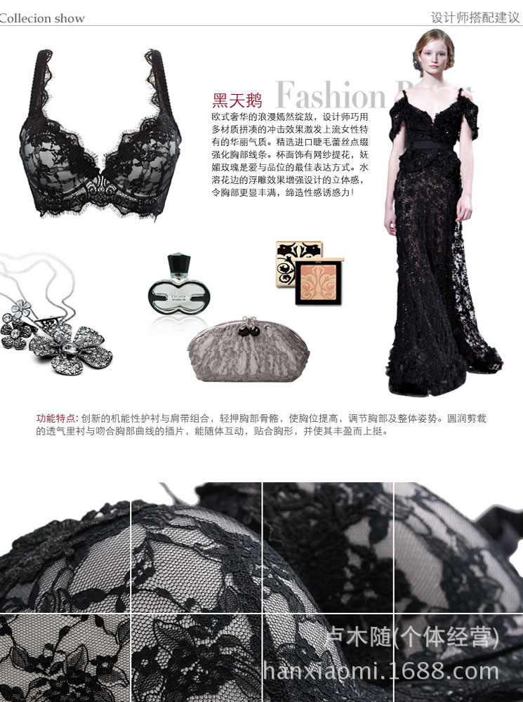 3320#時尚芭蕾黑天鵝性感奢華刺繡聚攏調整型四排扣女士胸罩套裝