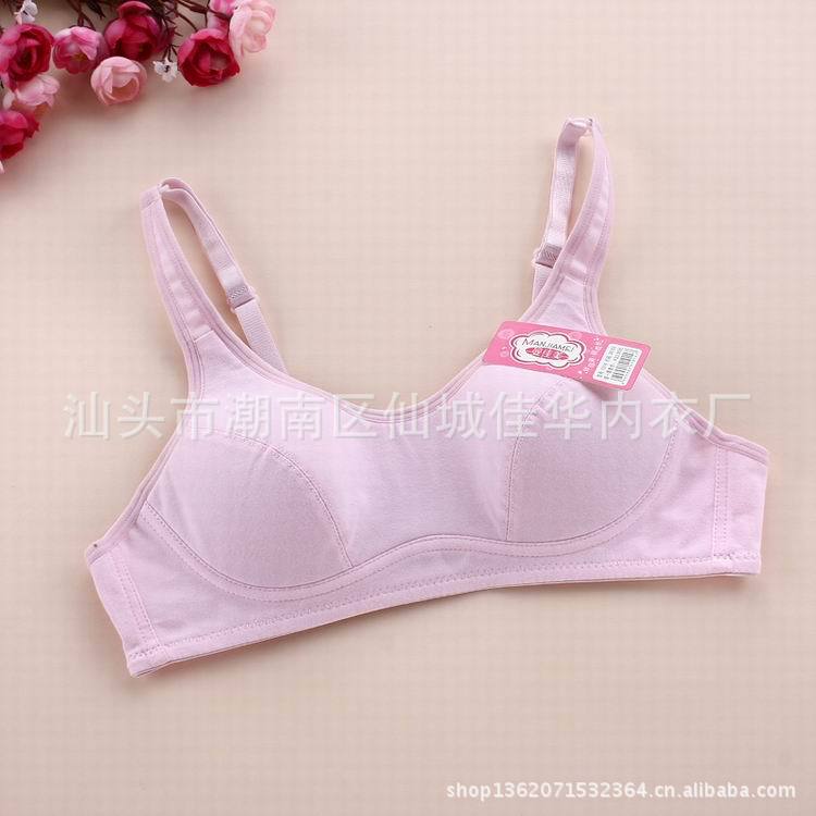 廠傢直銷 批發 純色薄款發育期學生內衣 純棉無鋼圈少女胸罩 1014