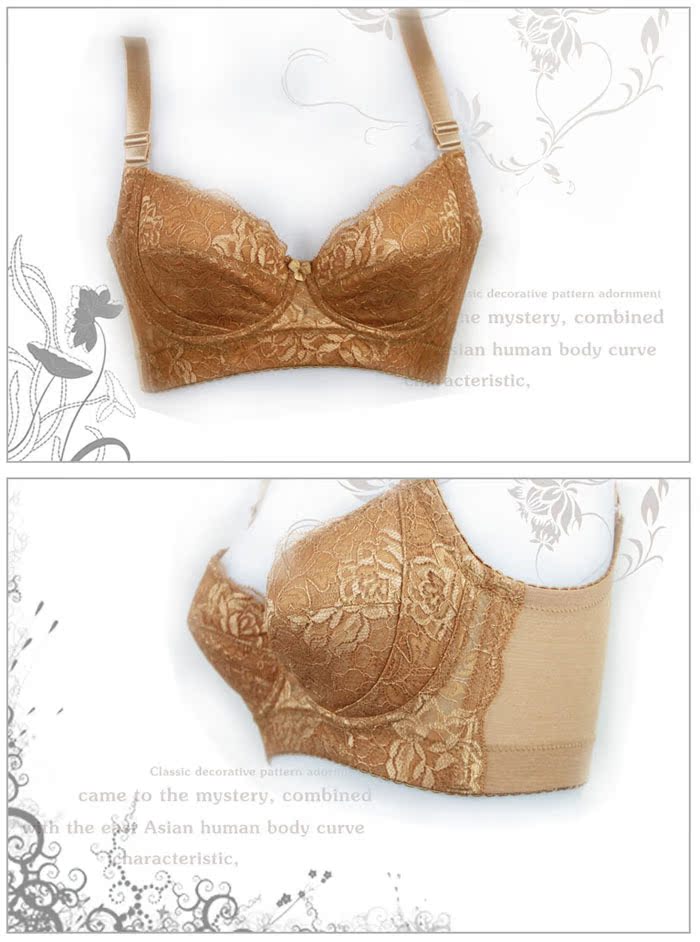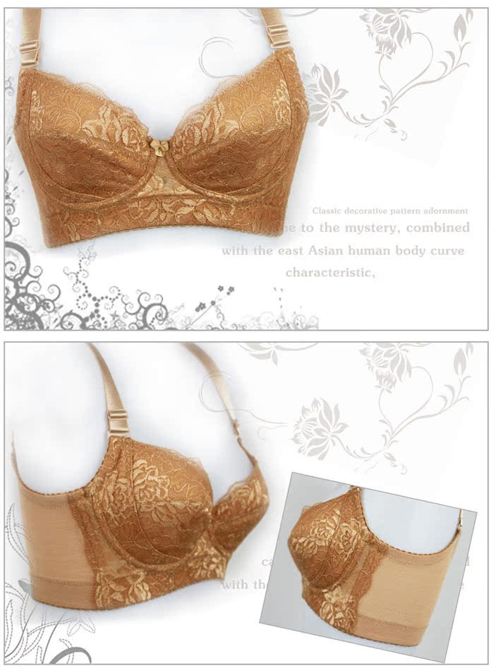高檔位的後肩帶設計能將腋後的脂肪移至胸部,下部寬彈性壓邊設計可防止脂肪下移至腹部。罩杯外側上提加壓設計,使罩杯的聚胸效果極佳,塑造出迷人的乳溝及胸型。