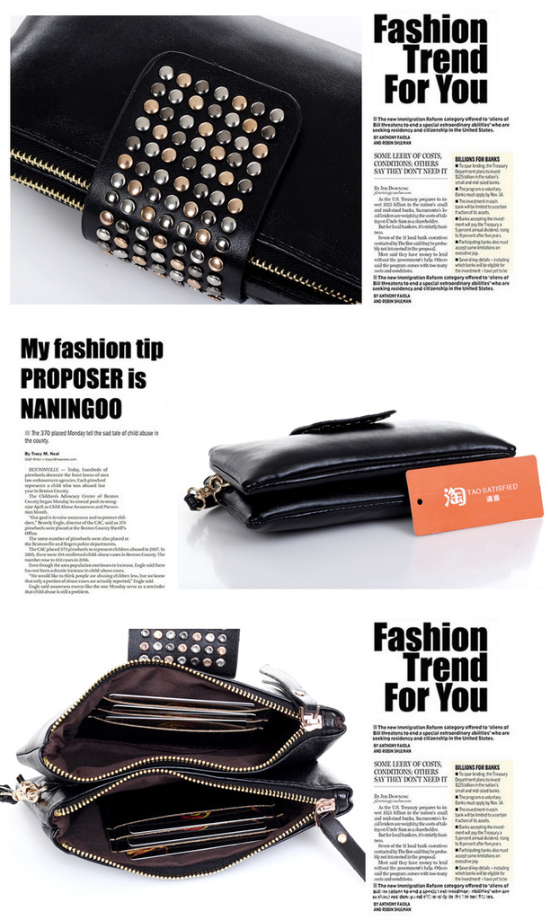 2013新款韓版女包手拿包手拎包仿皮朋克鉚釘包長款包女士包包批發