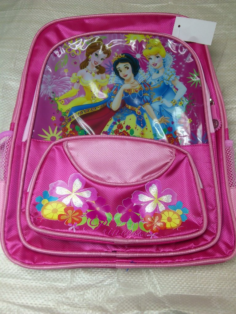 書包材料基本為梅紅 粉紅 紫色,圖案大多為迪士尼等流行卡通,默認隨機發貨