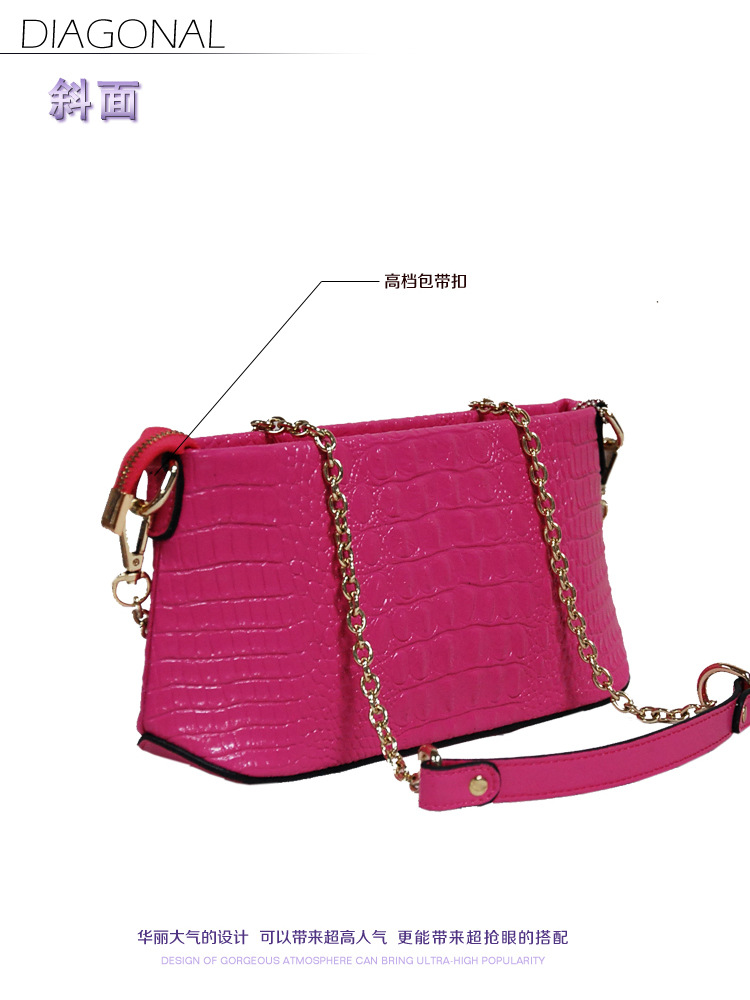 | 鱷魚紋大包已經在市場上有很高的呼聲 今年,品飛獨傢推出這款鱷魚紋包身的小包 我想說的是 這是款很耐看 也很有范的女包 采用精選進口鱷魚紋牛皮 100%真皮 獨特的紋路 手工鞣質的皮面 軟硬適中的包身 金屬鏈條 都是晚晏包的key words. 它可以很有文藝范也可以很有態度很帥性 【鄭重承諾】 | ||