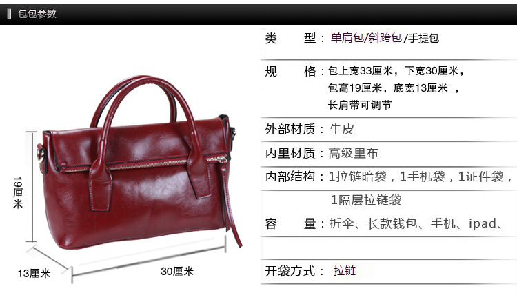 工廠批發 2013秋冬新款復古包油蠟牛皮女包手提斜挎包真皮女包