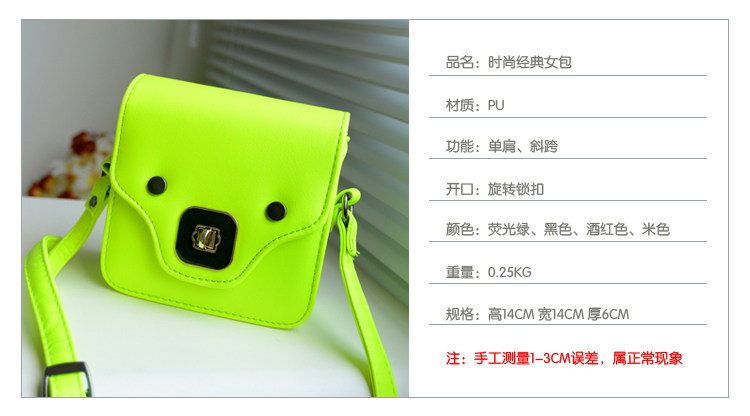 批發女包2013新款韓版熒光色轉鎖雙層手拿包糖果色單肩斜挎小包包