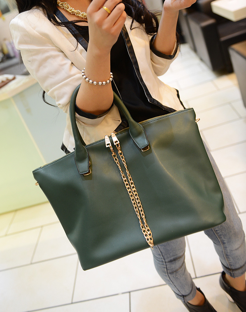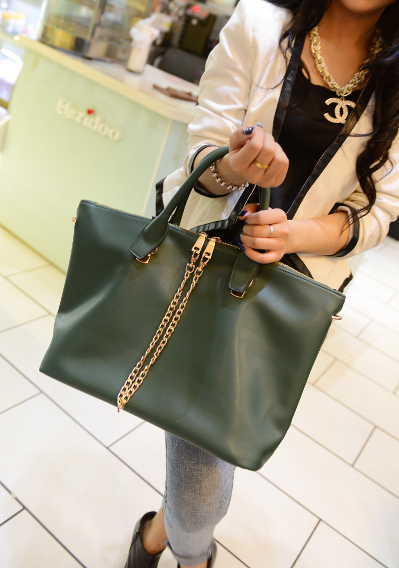藍聰秋冬新款鐵鏈簡約大包時尚潮流復古單肩手提包個性女包批發NN