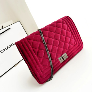 2013秋冬小香風迷你包糖果色小包包菱格鏈條包絨面女包單肩斜跨包