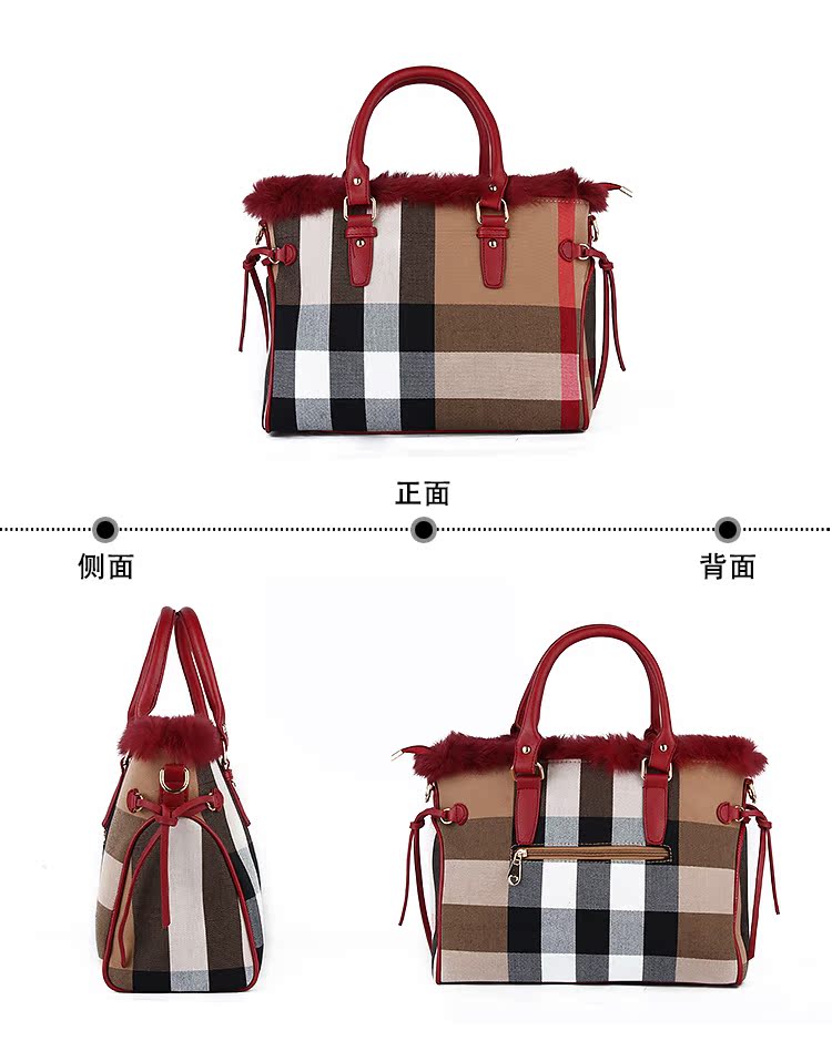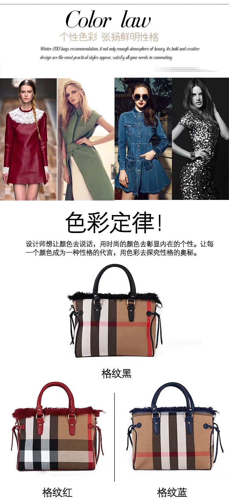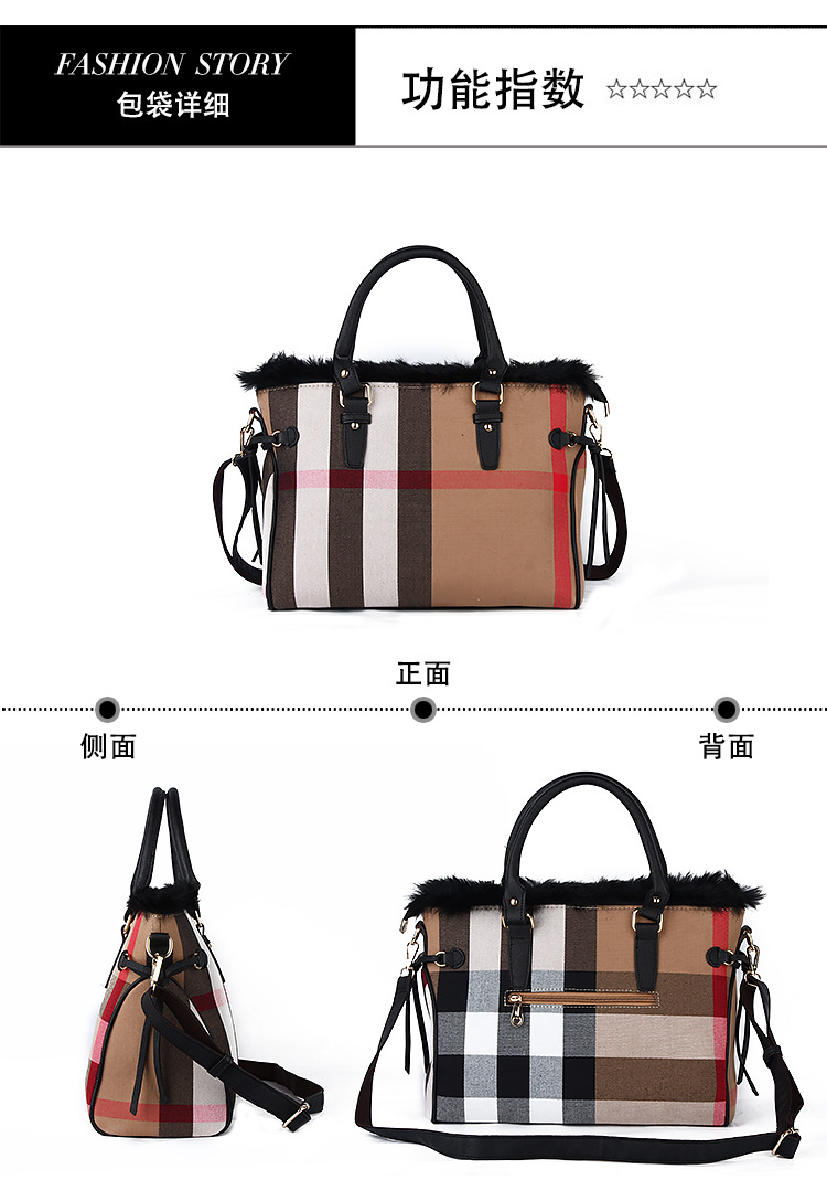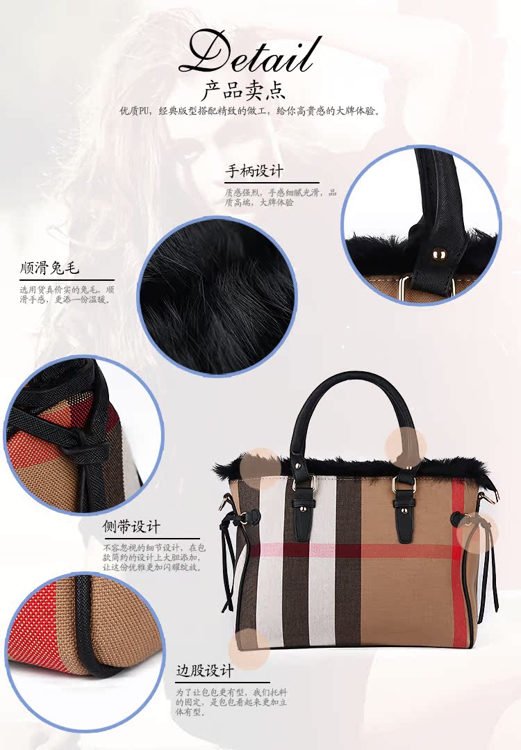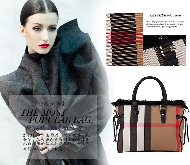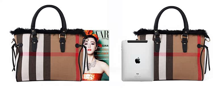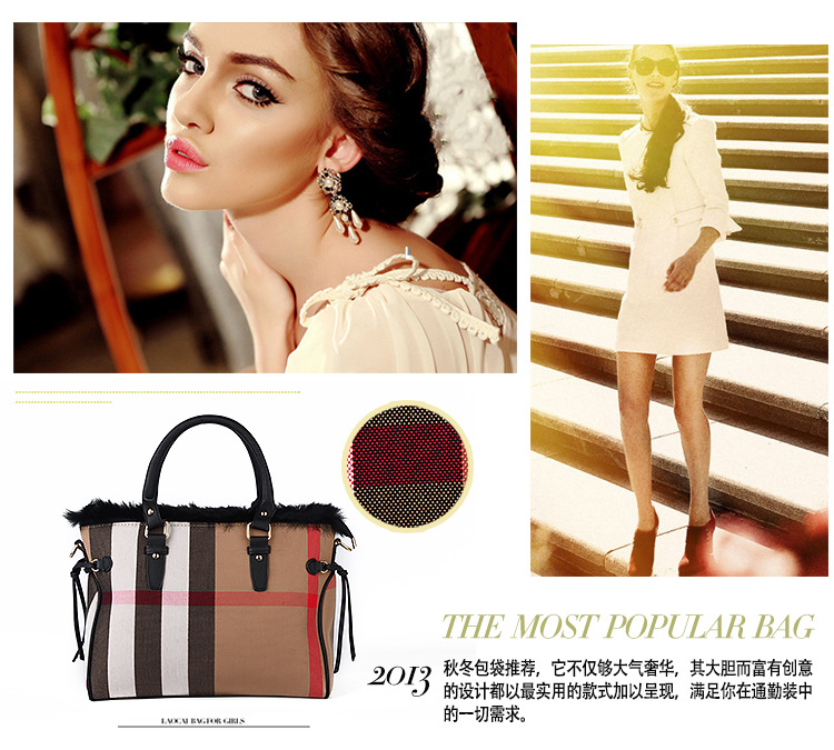 廠傢2013秋冬新款歐美優雅時尚手提單肩格紋兔毛PVC女包發批直銷