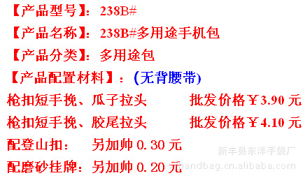新豐縣永益袋廠公司是專業生產加工:手機袋手機套手機包相機包零錢包鑰匙包腰包電腦包平板電腦包筆記本包內膽包手拿包等多功能包產品的個體經營企業,擁有完整、科學的質量管理體系。我們以誠信、實力和產品質優獲得業界人士的認可。歡迎各界朋友蒞臨我廠參觀、指導和業務洽談。