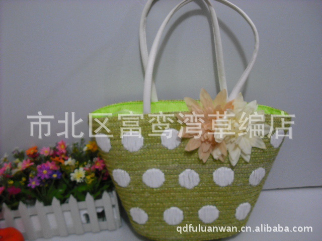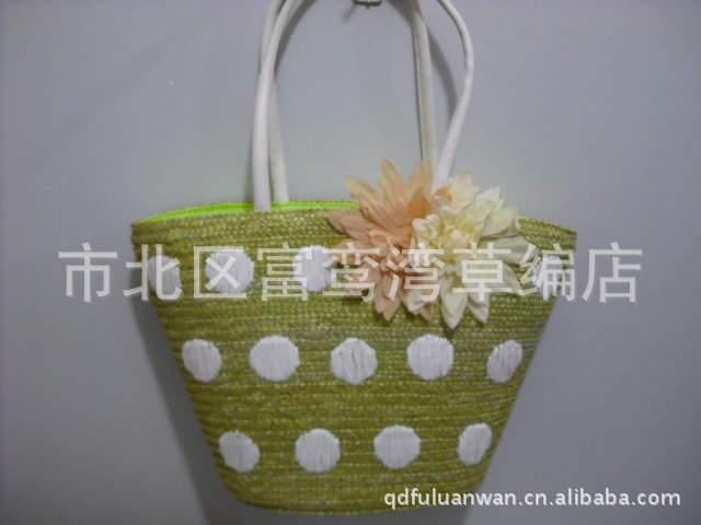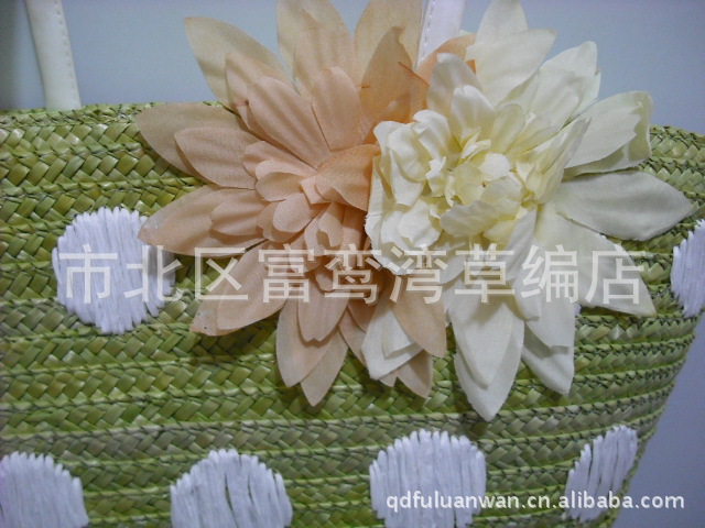 3色入花朵朵單肩包休閒包藤編包沙灘包草編包