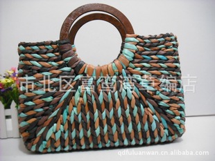 2013木把手混色編織大元鬥手提女士草編包