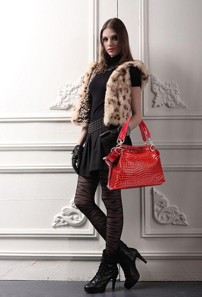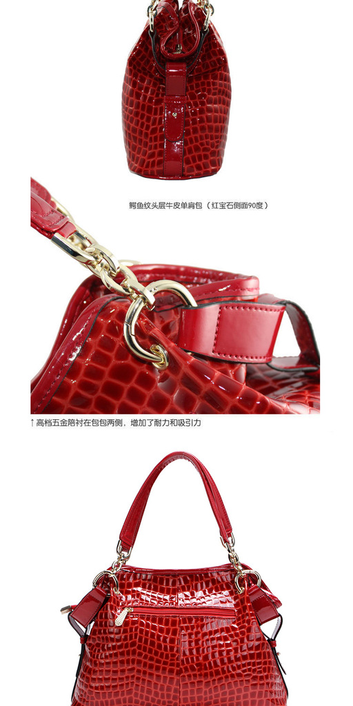 2012秋冬新款英倫品牌鱷魚紋漆皮真皮女包牛皮手提單肩包混批0905