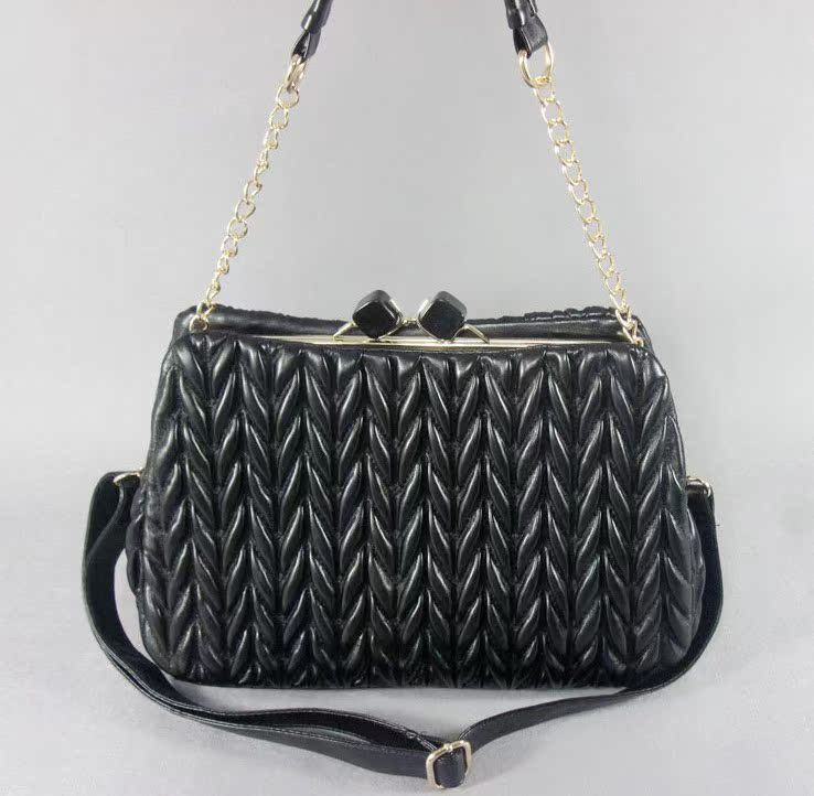 2013新款韓版褶皺歐美泡泡夾子包單肩斜挎 菱格鏈條包 女包包