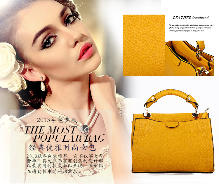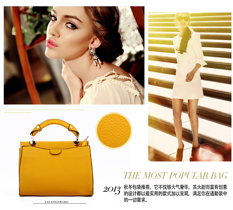 廠傢2013秋冬季新款歐美時尚優雅荔枝紋手提單肩pu女包包直銷批發