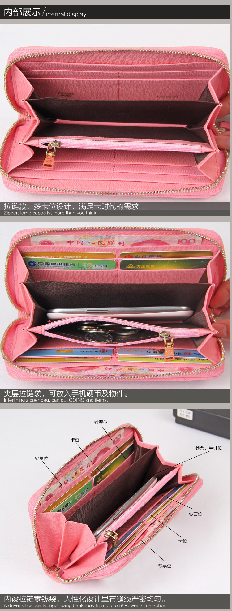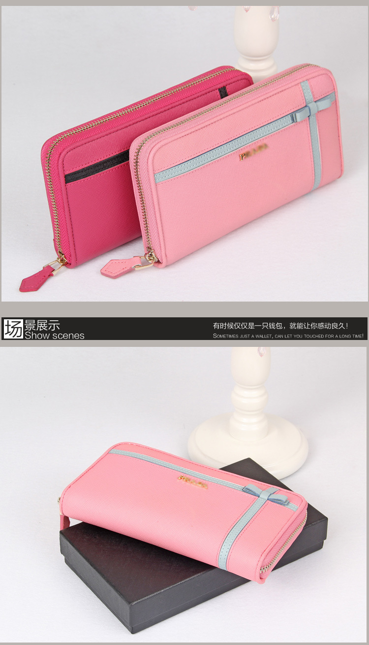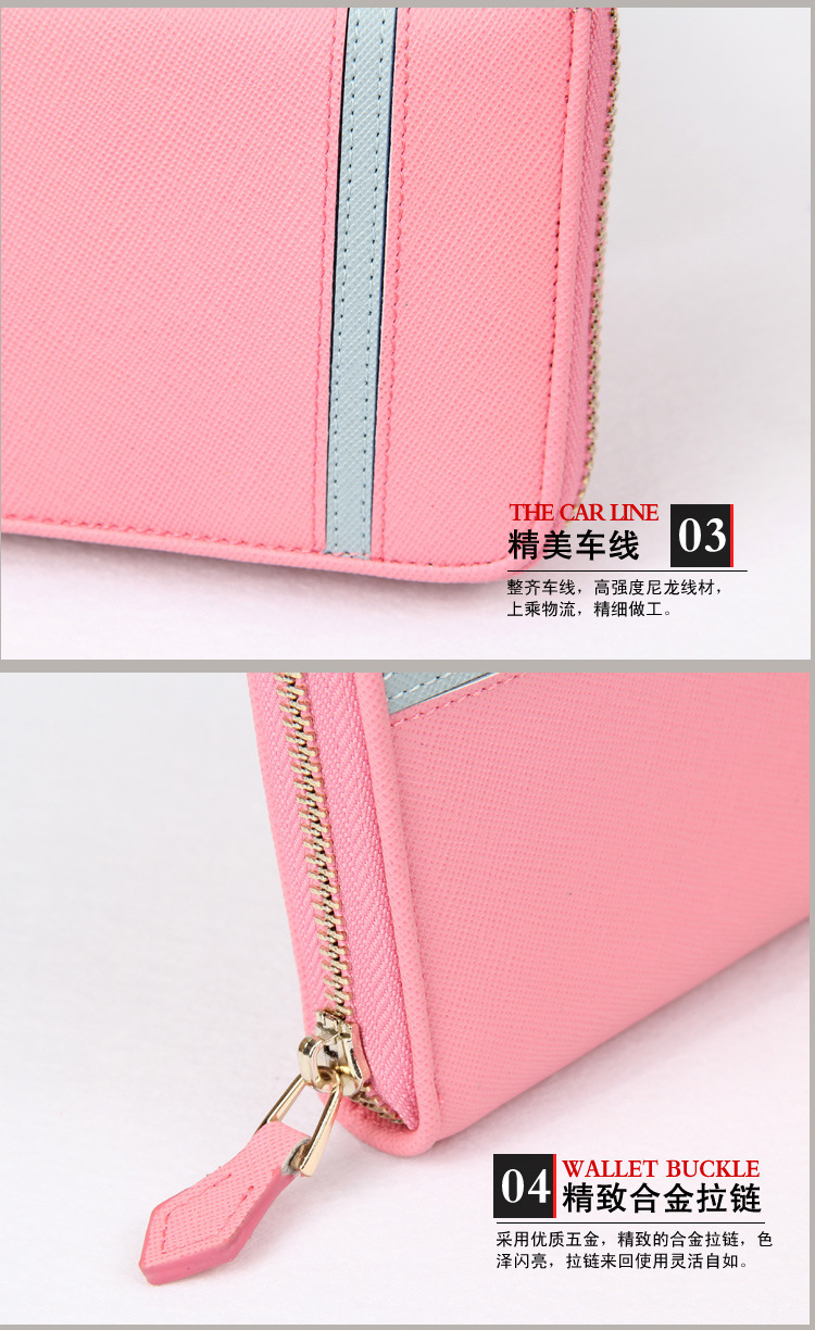 2013新P傢歐美十字紋牛皮女士長款錢包拉鏈手拿包多卡位撞色錢夾